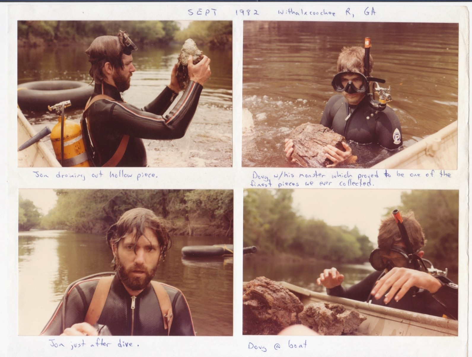 These beautiful agatized fossils are found in the dark depths of a root beer-colored river deep in the wilds of south Georgia. We have been diving and exploring this